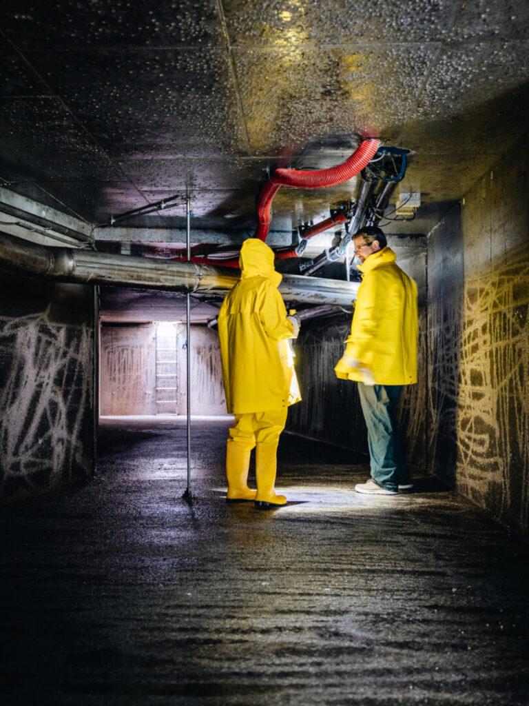 „Der Kanal ist eine eigene Welt. Die Dunkelheit, die Geräusche und es ist auch nicht ungefährlich, hier zu arbeiten. Die Zustiege sind teils sehr hoch und bei Starkregen steigt das Wasser minütlich rasend schnell an. Die Mitarbeiter müssen auch immer Gaswarngeräte bei sich haben und bei zu hoher Belastung sofort raus”, erklärt Manfred Holzgethan. Und: „Wegen der hohen Sicherheitsanforderungen legen wir uns hier selbst die höchsten Sicherheitsstandards auf. Zum Schutz unserer Mitarbeiter stellen wir die modernsten Schutzausrüstungen und Sicherheitseinrichtungen zur Verfügung.”